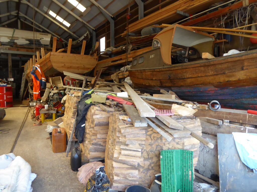 Johann der seit bald 20 Jahren auf seinem Boot lebt und Ole, der Bauer der Insel, erzählen uns ein wenig über das Leben hier und wenig später stehen wir im Kuhstall und gleich daneben in der grossen Werkstatt, wo Holzboote gebaut werden.