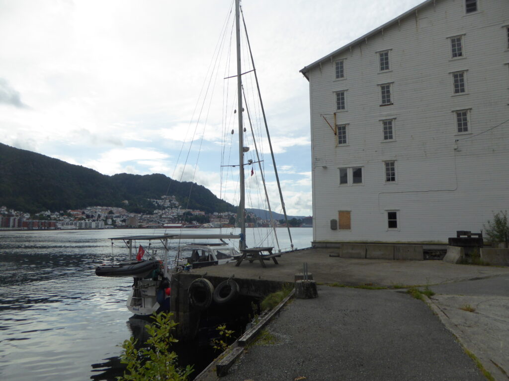 Wir entscheiden uns am nächsten Tag nach Bergen zu fahren – wir wollen noch ein paar Dinge besorgen. Der Hafen in Bergen ist jetzt im Sommer überfüllt und meistens muss man im Päckchen liegen. Wir haben keine Lust darauf und suchen uns einen anderen geeigneten Platz und werden 2km nördlich fündig.