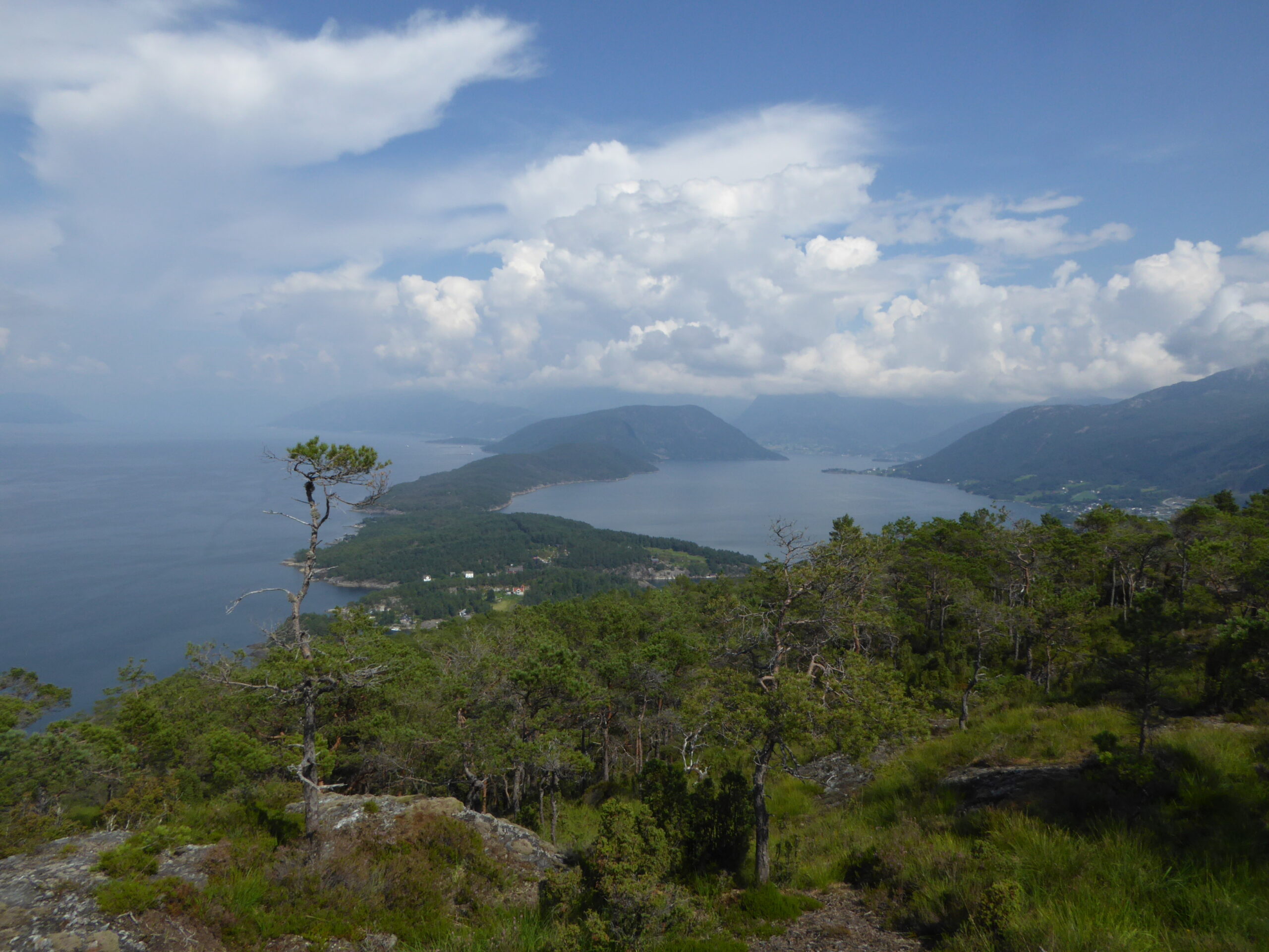 Es geht weiter Richtung Norden, vorbei an Haugesund in den Hardangerfjord. Am Horizont brauen sich dunkle Wolken zusammen und es ist klar dass ein Gewitter aufzieht. Zeit um in eine geschützte Bucht zu gelangen. Wir hatten nicht mehr viel Zeit und so entschliessen wir uns in der Bucht vor Skorpo zu ankern. Leider hielt der Anker nach zwei Versuchen nicht und so machten wir doch lieber am kleinen Betonsteg fest. Kaum waren wir sicher angebunden blitzte es alle paar Sekunden und Donner grollte in den Bergen. So intensiv haben wir es selten erlebt. Ein Blitz schlägt ca. 200m vor unserem Boot ein.