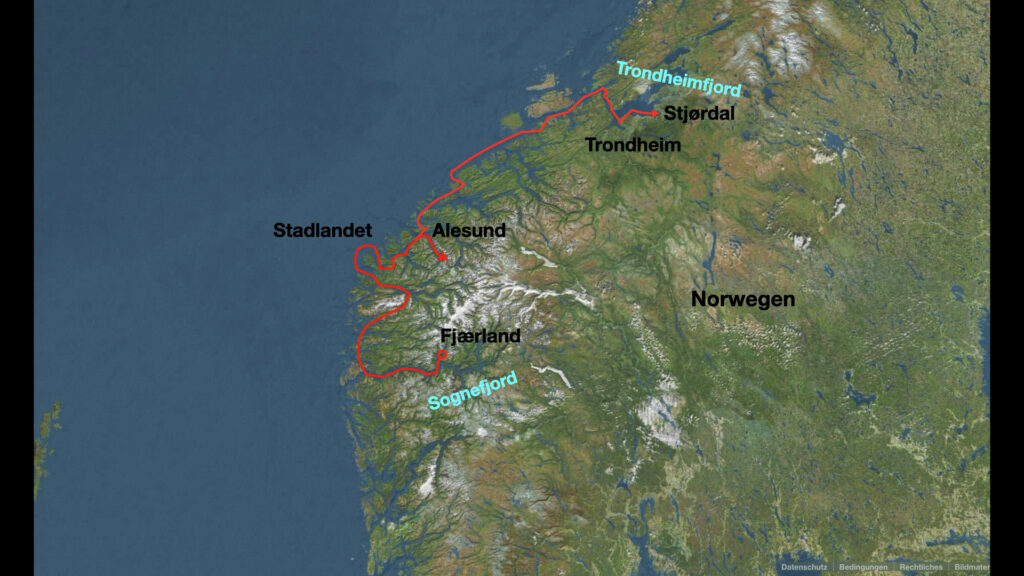 Nicht mehr weit und wir müssen auf unserem nördlichen Kurs das berühmte Stadlandet umrunden. Der westlichste Punkt Norwegens wird oft als „das Kap der Stürme“ bezeichnet. Schon seit Jahrhunderten ist Stadlandet berüchtigt für starke Winde und hohe Wellen. Die Wettervorhersage verspricht für die kommenden Tage jedoch wenig Wind und so wollen wir dieses Wetterfenster nutzen um das Kap zu umrunden.