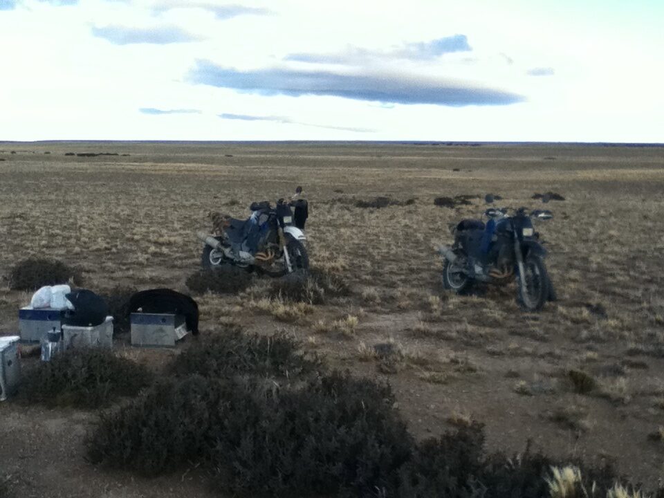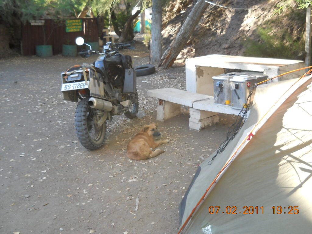 Schoene Uebernachtungen im Zelt sind bis jetzt eher selten, Chile und Argentinien sind fast ausschlieslich in Privatbesitz und um ihr Land machen die Besitzer tausende KM Zaeune. Allein von Buenos Aires bis an die Chilenische Grenze haben wir ausgerechnet, dass es an die 6’000’000 Pfosten pro Strassenseite sein muessen. Also jeden Meter ein Schweizer hinstellen, Haende geben und die Schweizer Bevoelkerung wuerde 3000km Zaun ergeben