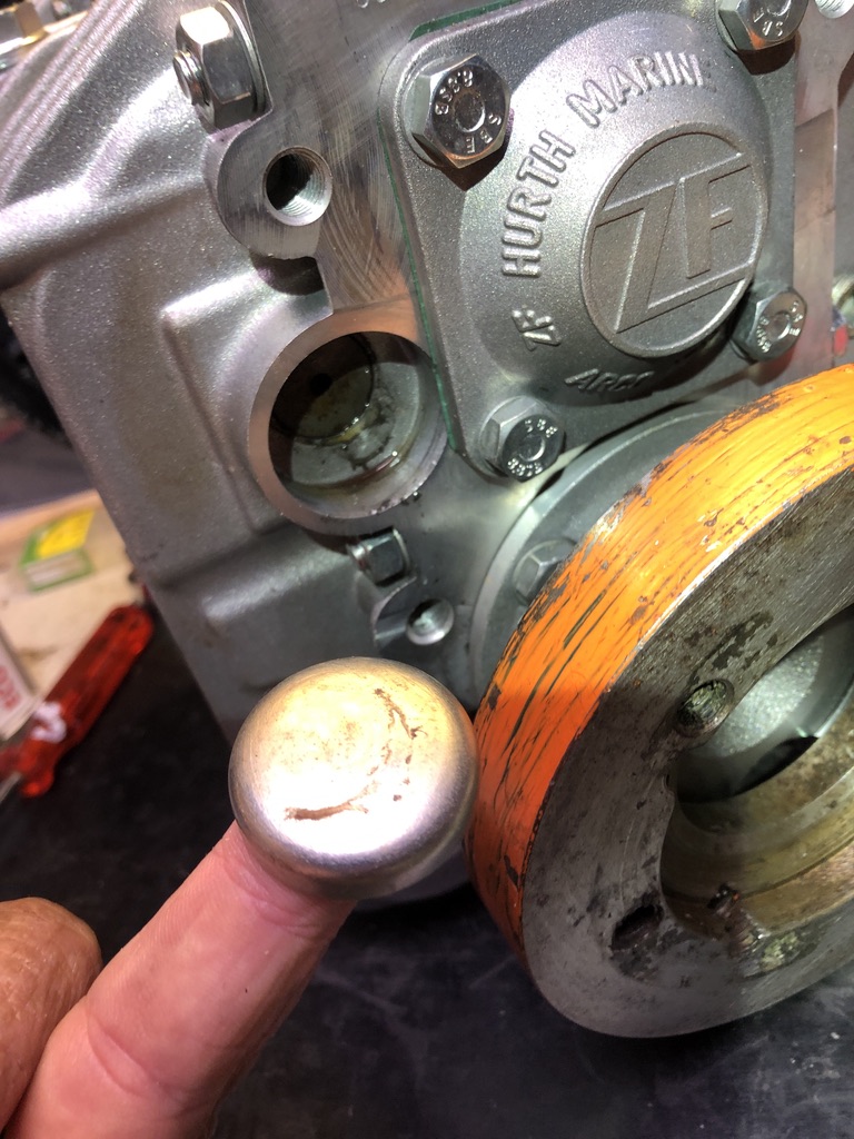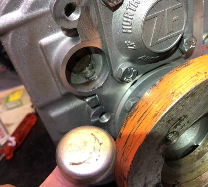Im Hafen von Stjørdal angekommen hat Martin auch gleich das Getriebe nochmals ausgebaut. Und siehe da: der kleine Deckel war vom Gehäuse abgefallen und so tropfte immer etwas Öl aus dieser Öffnung. Leider konnten wir das beim eingebauten Getriebe nicht richtig sehen. Wir hätten es über komplizierte Wege auf Garantie zur Reparatur nach Oslo senden können, aber nach unseren letzten Erfahrungen haben wir uns entschieden, es selber zu reparieren.