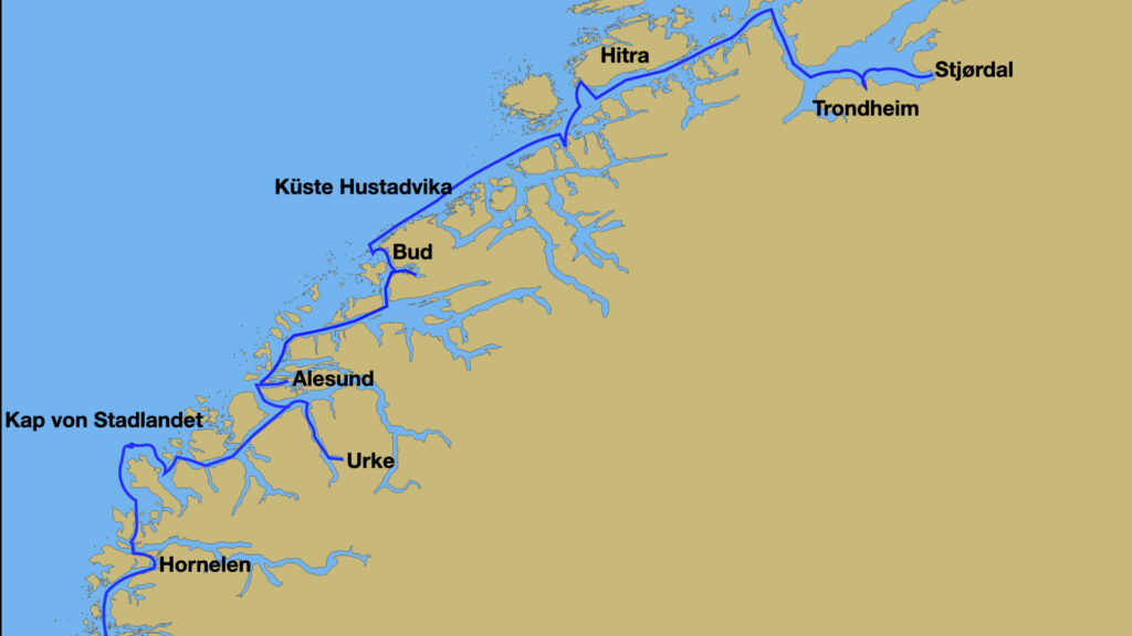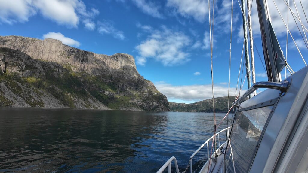 Nicht mehr weit und wir müssen auf unserem nördlichen Kurs das berühmte Stadlandet umrunden. Der westlichste Punkt Norwegens wird oft als „das Kap der Stürme“ bezeichnet. Schon seit Jahrhunderten ist Stadlandet berüchtigt für starke Winde und hohe Wellen. Die Wettervorhersage verspricht für die kommenden Tage jedoch wenig Wind und so wollen wir dieses Wetterfenster nutzen um das Kap zu umrunden.