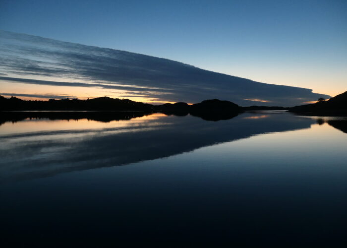 Das Wetterfenster für die Umrundung von Stadlandet sieht weiterhin stabil aus und wir wollen es nicht verpassen, also brechen wir gleich am nächsten Morgen auf. Wir wollen in Silda, kurz vor dem Kap nochmals ankern um es früh am nächsten Tag zu umrunden. Wir kommen gut vorwärts, checken nochmals das Wetter und entschliessen uns spontan bereits heute das Kap zu umrunden. Wir fahren bei wenig Wind mit ca. 1-2m hohe Wellen und klarer Sicht 20sm um das Kap. Zur Stabilisierung setzen wir das Grosssegel und motoren eng entlang der Küste. Obwohl kaum Wind weht, stampfen wir mit ca. 3 Knoten bei erhöhter Drehzahl durch die Wellen. Beide sind wir doch auch etwas angespannt – gleichzeitig wissen wir dass der Ölverlust minimal ist und wir im Schlimmsten Fall nur Öl nachfüllen müssten, ausser ein Simmerring versagt plötzlich. Aber das wäre dann eine andere Geschichte.